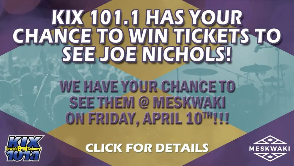 Country Music Legend Joe Nichols is coming to KIX Country @ Meskwaki‘s Veterans Convention Center on Friday, April 11th!