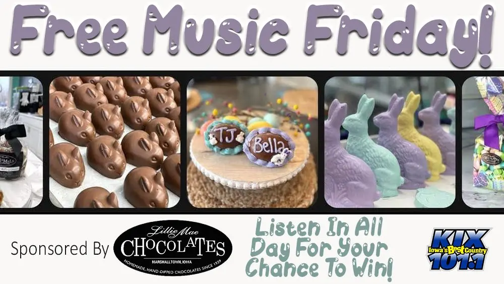 This Friday is a FREE MUSIC FRIDAY & it’s brought to you by Lillie Mae Chocolates in Marshalltown! Listen all day (4/3) for the cue to call, be the correct caller & you win a digital copy of “A Tribute to the Judds” (from BBR Music Group) & a FREE medium Box of Chocolates from Lille Mae Chocolates.